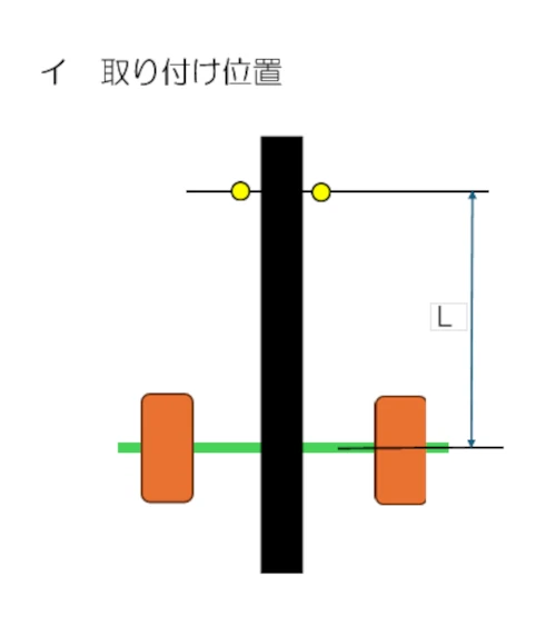 次に、センサの取り付け位置を考えました。車軸からの位置Lの寸法が大きい場合、車輪の少しの動きで、センサがラインを離れたり、近づいたりするので、細かな動きでラインをとらえやすくなりますが、暴走しやすくもなります。