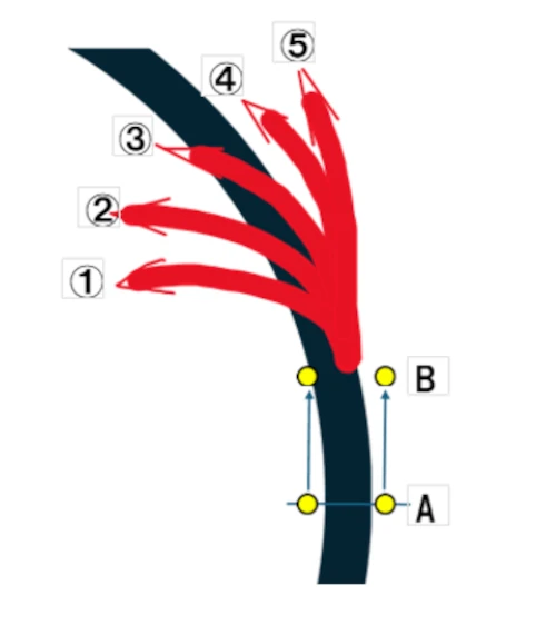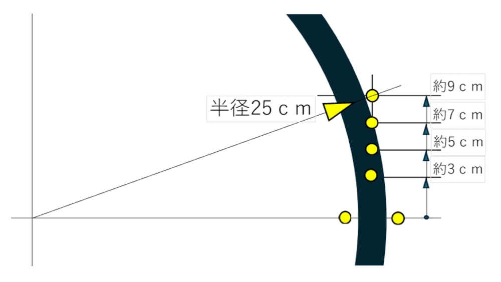 ラインが直線と分かっていればよいのですが、直線とカーブが混在する場合は、カーブを中心に考える必要があります。