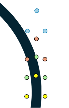 緑色:中央が1→0でラインをまたいでいる